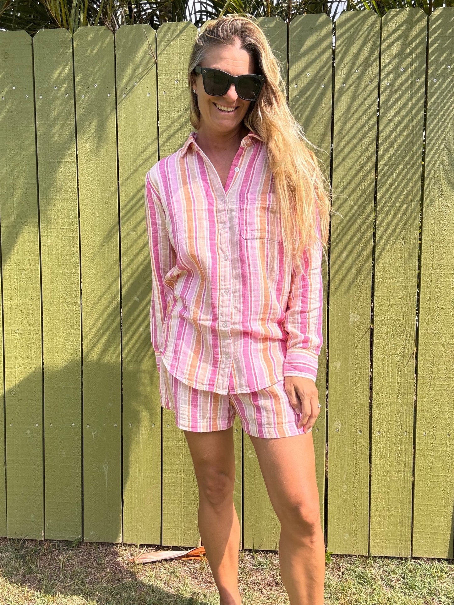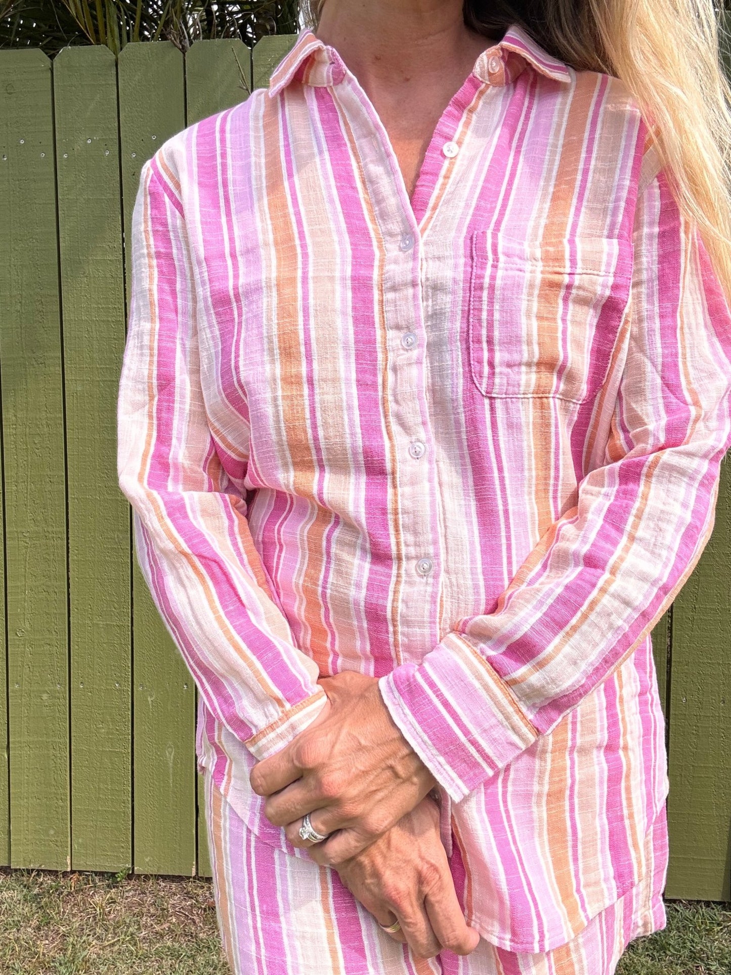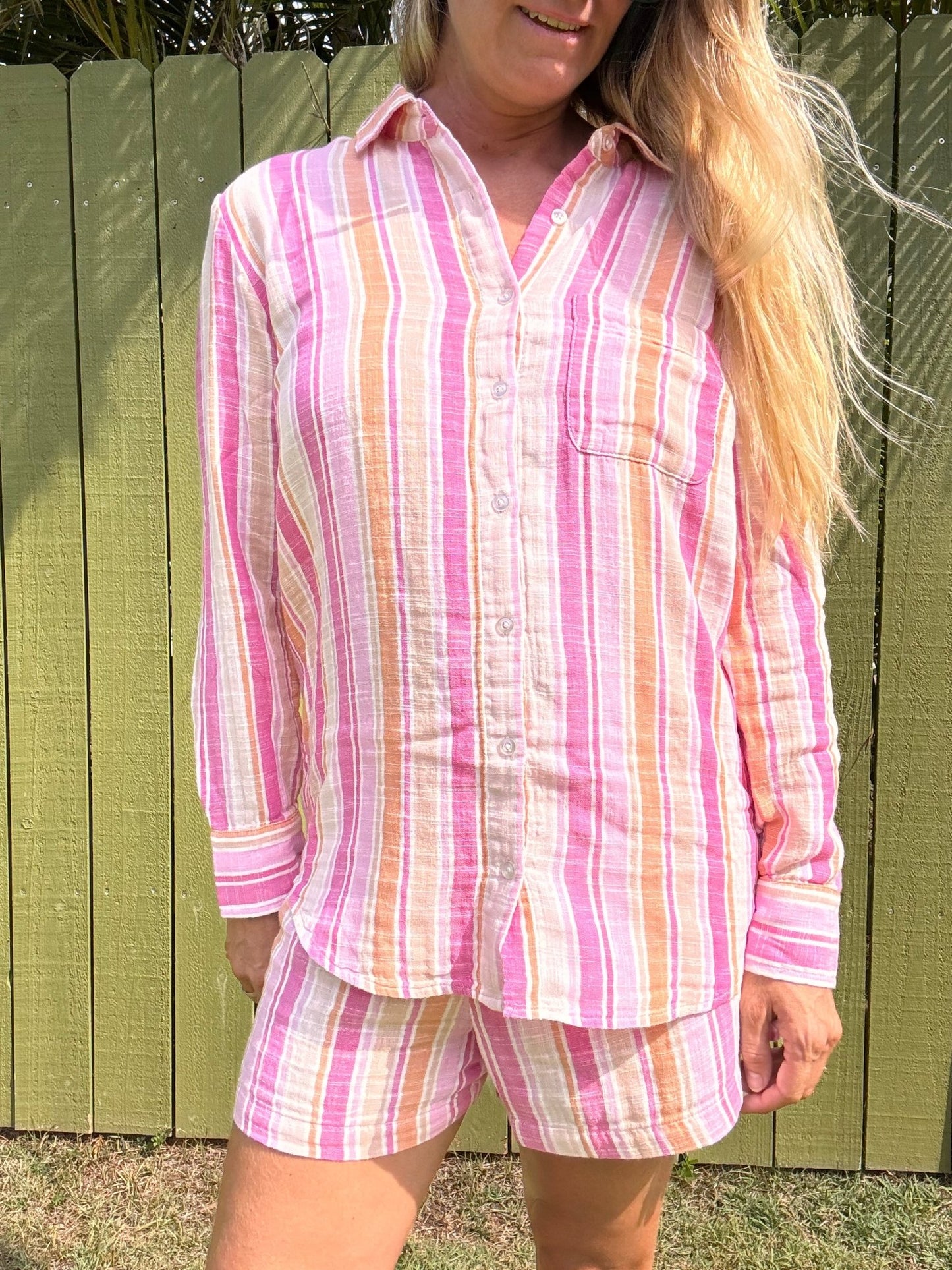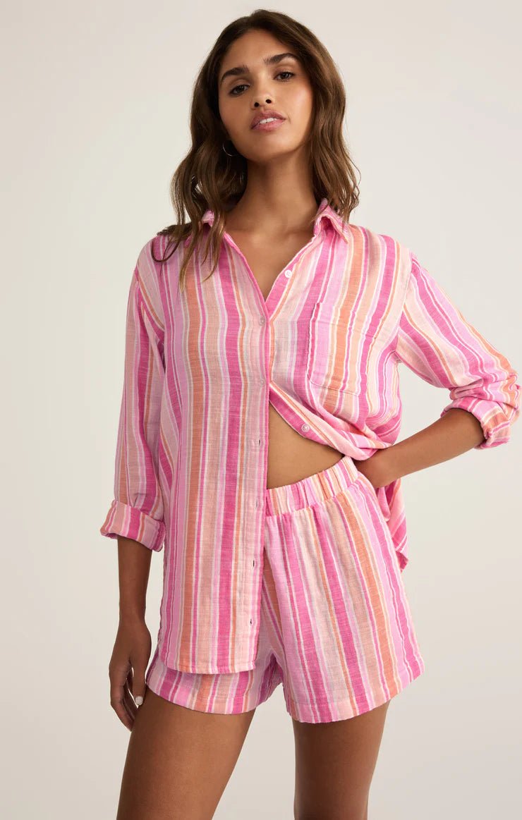 Regular price $50.00 USDAdd a pop of playful style to your wardrobe with the ZSUPPLY Saturdays Stripe Shirt! This relaxed button-up features a collared neckline, chest pocket, and effortless drape, all crafted from midweight double gauze fabric. Perfect for layering or wearing on its own, this versatile piece is a must-have for any season!