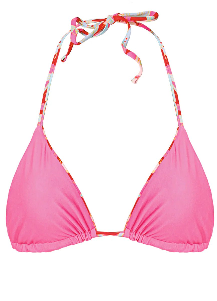 Slip into the Balmy—your new summer essential that's as versatile as it is chic. This reversible sliding triangle bikini top flips inside out for a whole new vibe, so you're basically getting two looks in one.