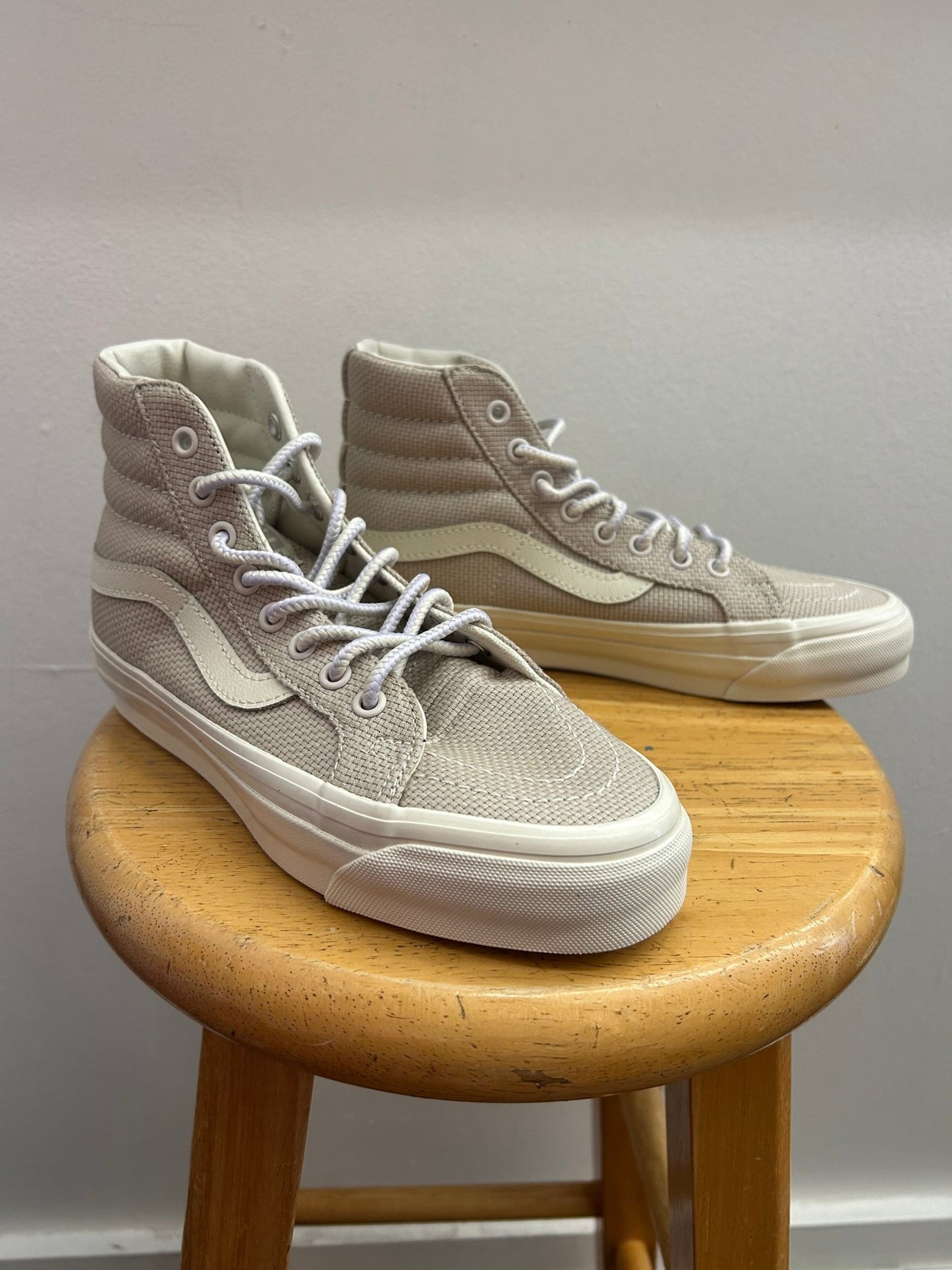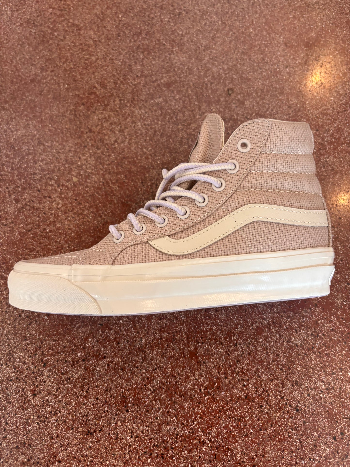 Step into style with the VANS MTE Sk8-Hi Reissue 38 Canvas Sneaker in a unique weave pattern and sand color. These shoes combine fashion and durability with their canvas construction and high-top design. Perfect for the cooler weather, these sneakers will keep you looking cool and feeling comfortable.