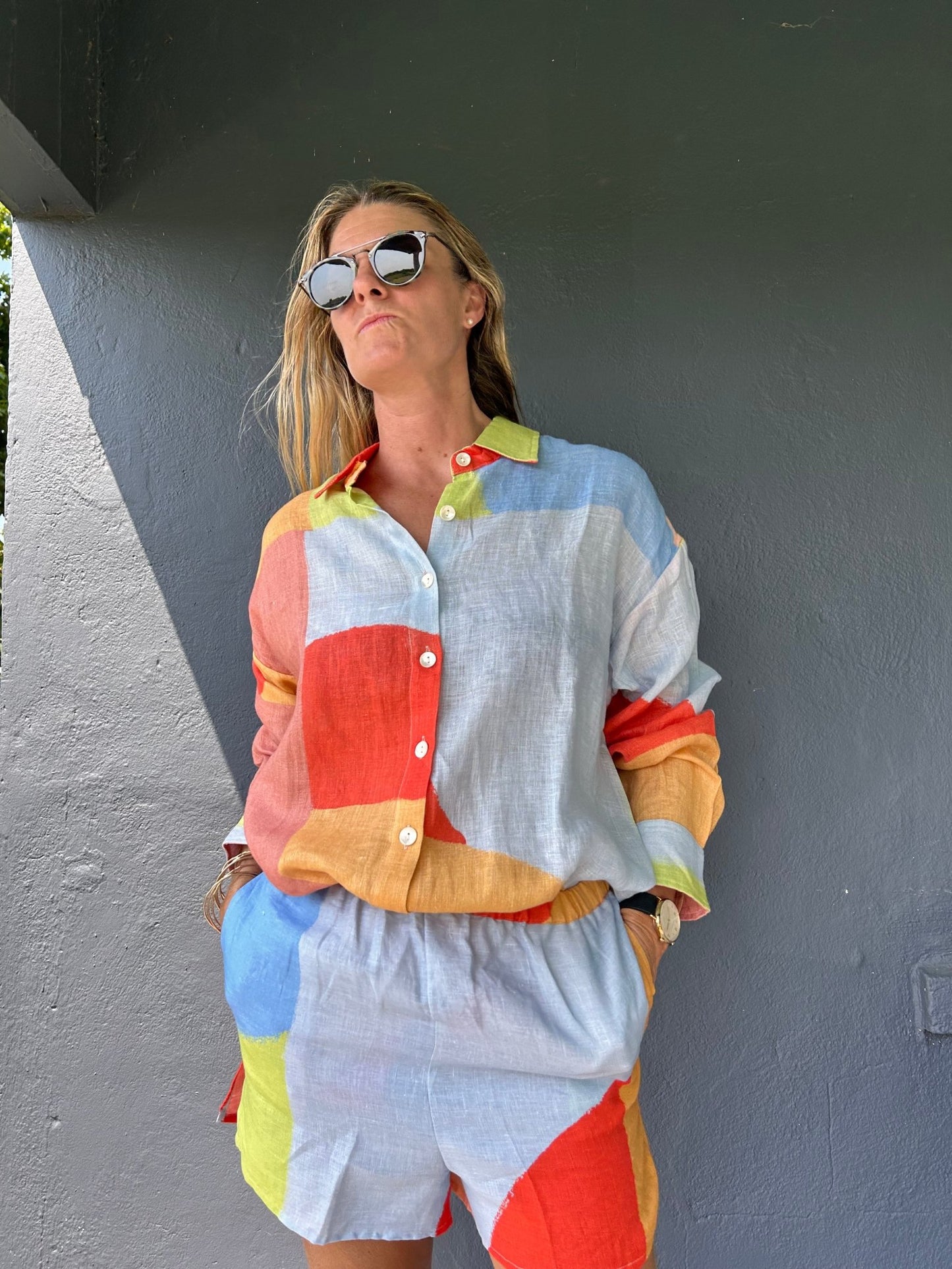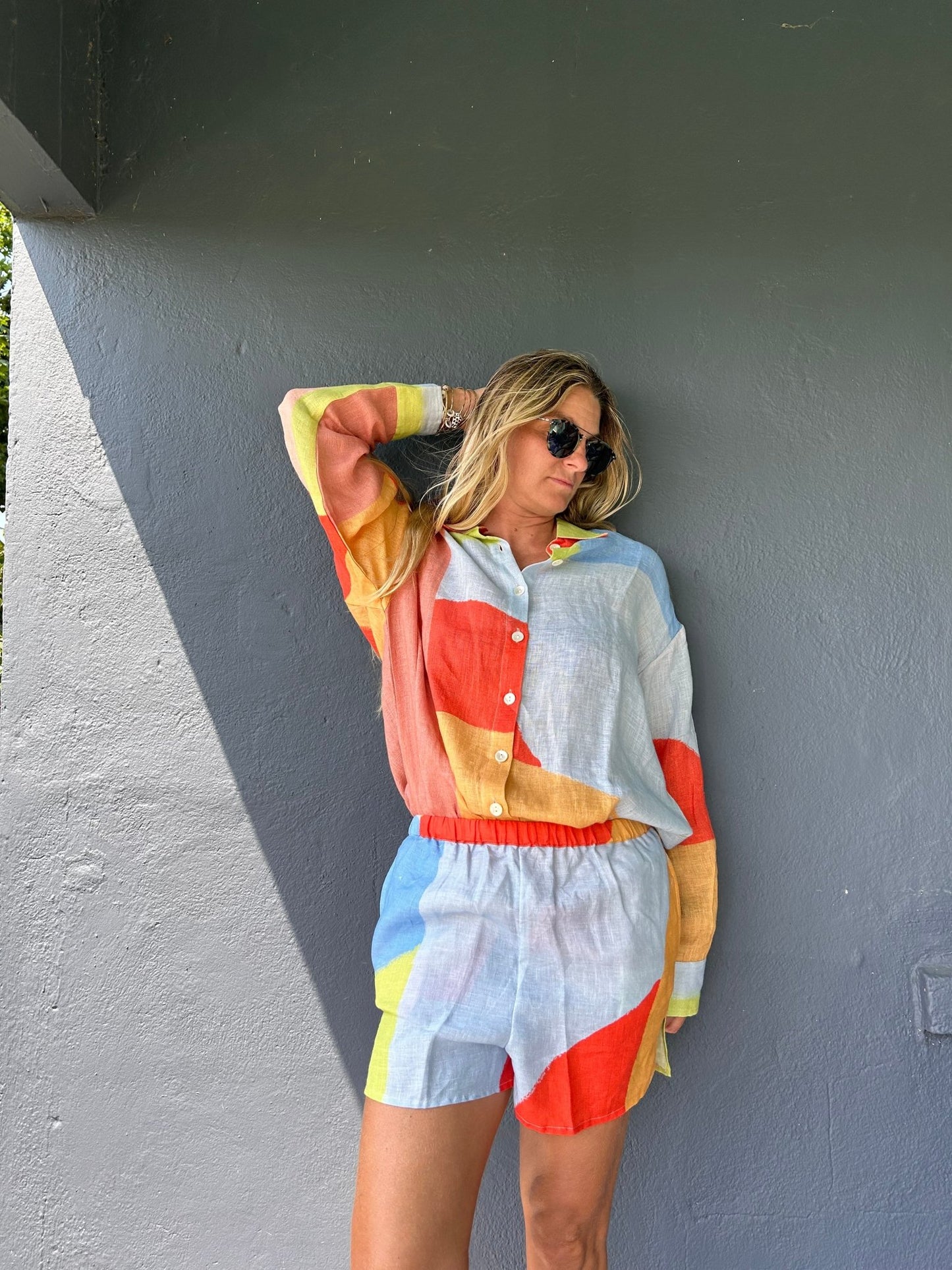 VITAMIN A Tallows Linen Short - Abstract Colorblock EcoLinen
