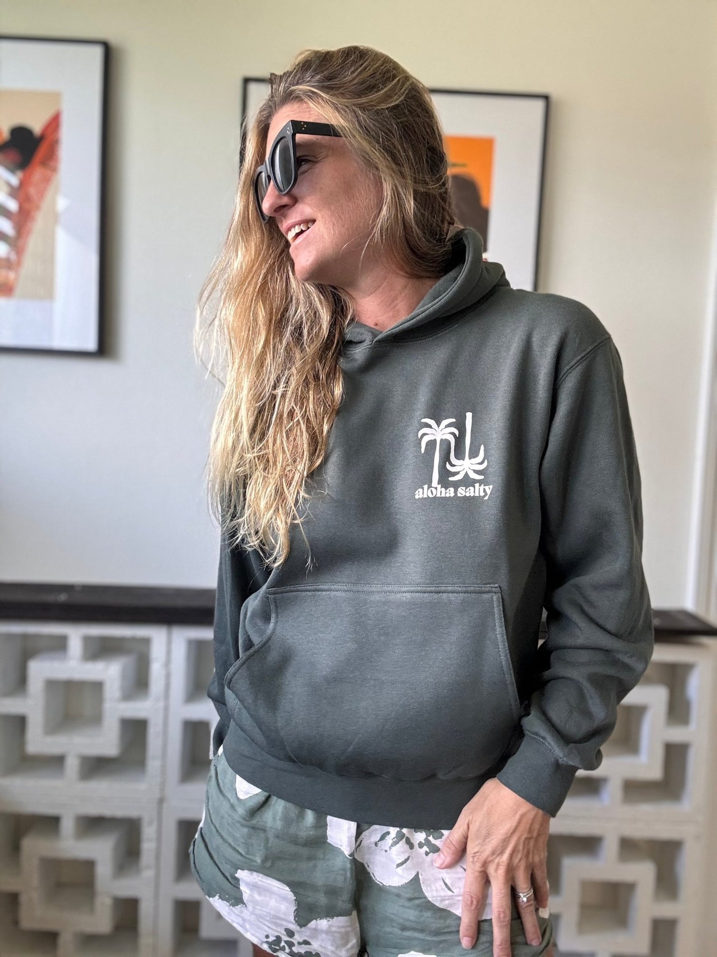Aloha Salty Hooded Sweatshirt-Green Palm