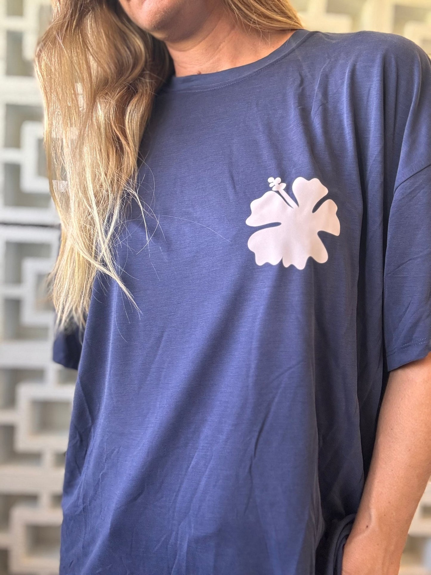 Hibiscus OMMS Oversized Tee-Navy/Sunset Pink