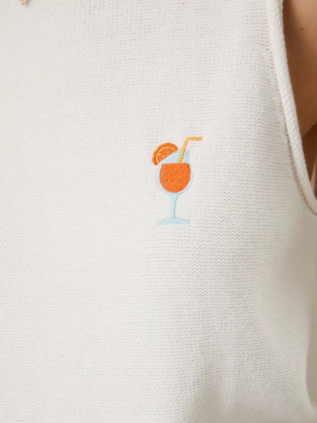 Throw on this breezy cotton sweater vest and channel your inner coastal cool—perfect for layering over your favorite tee or keeping things fresh on its own. The playful "Spritz" embroidery adds just the right amount of personality to elevate any casual look.