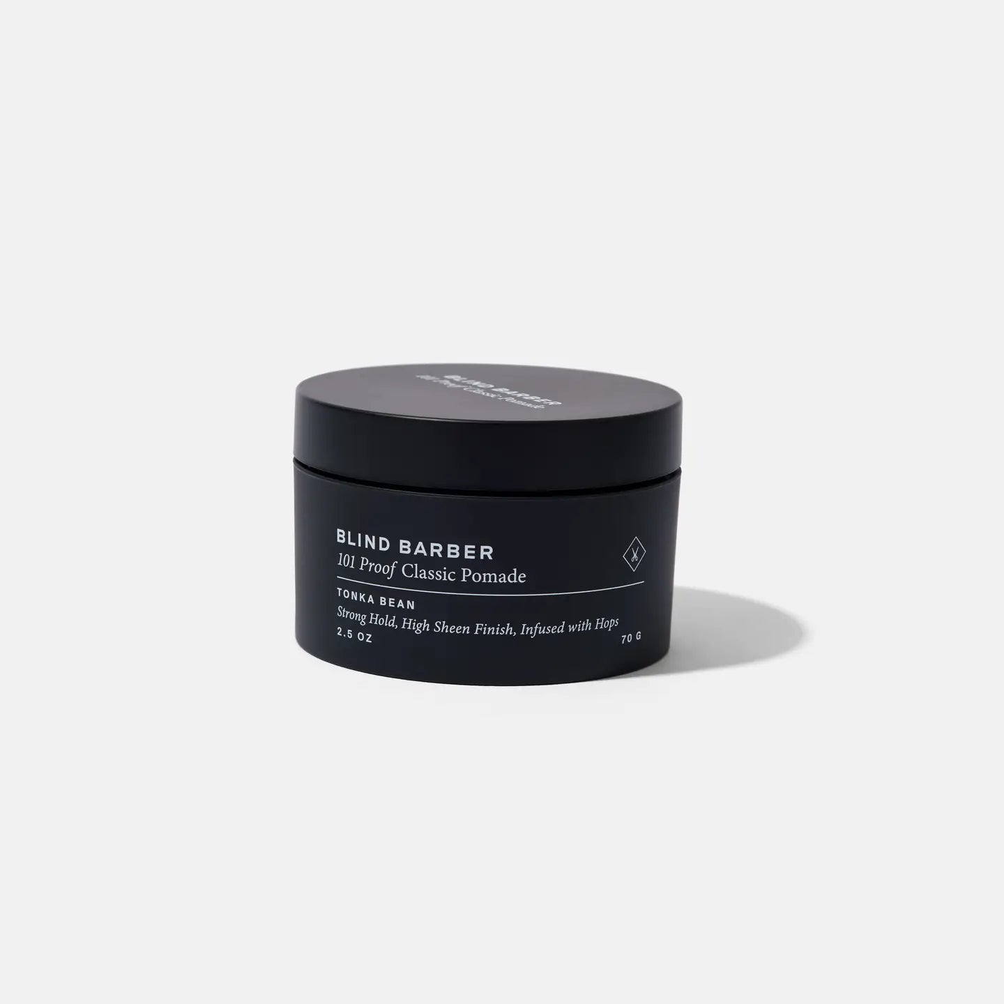 Introducing Blind Barber's 101 Proof Classic Pomade, infused with hops for maximum hold and a high sheen finish. Say goodbye to parabens, sulfates, and artificial dyes - this product is made for the handsome man in mind. With just a dime-sized amount, you can achieve the perfect look while still being able to run your hands through your hair.