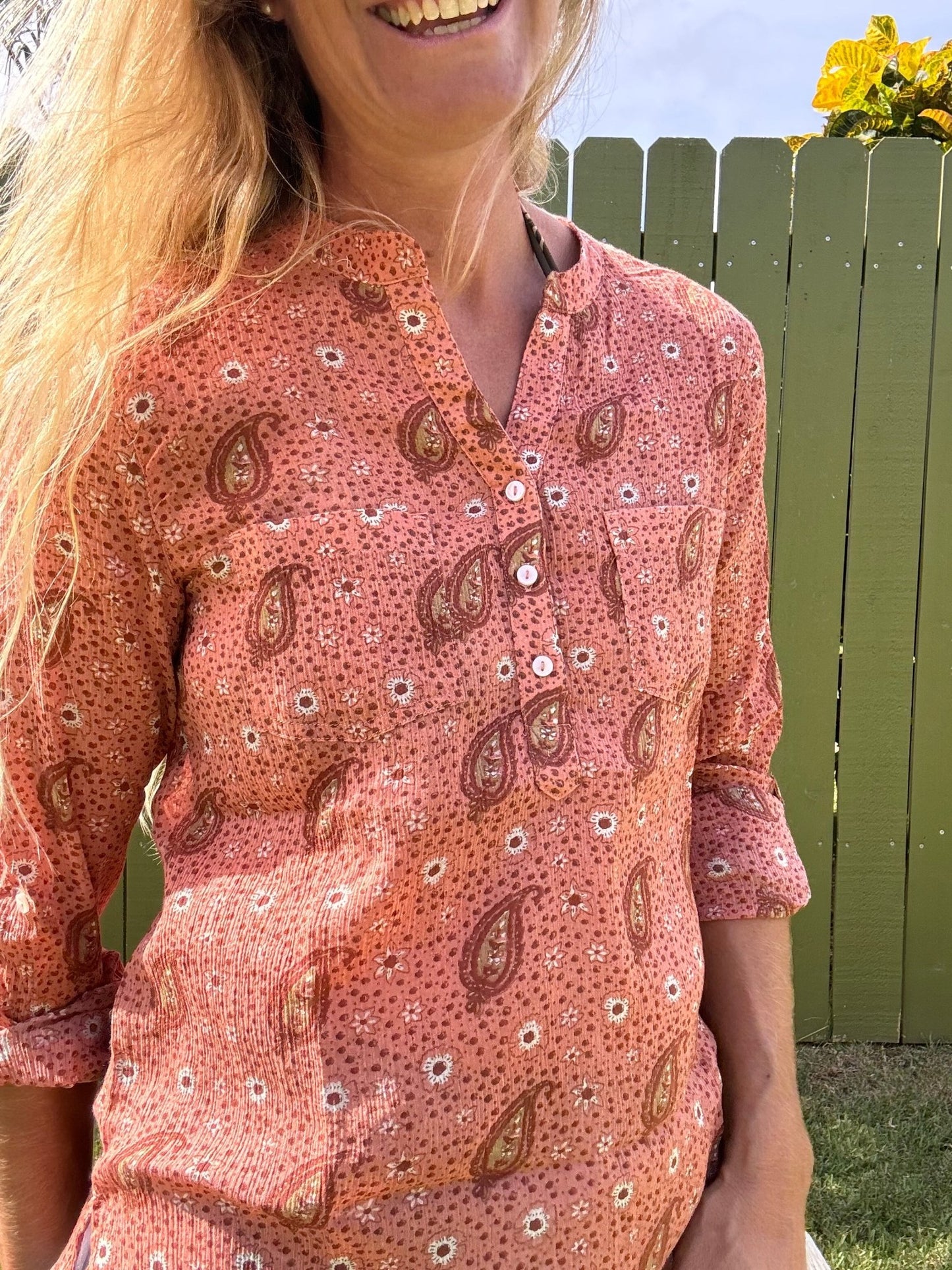 CARVE Dylan Gauze shirt- Lt Henna Paisley