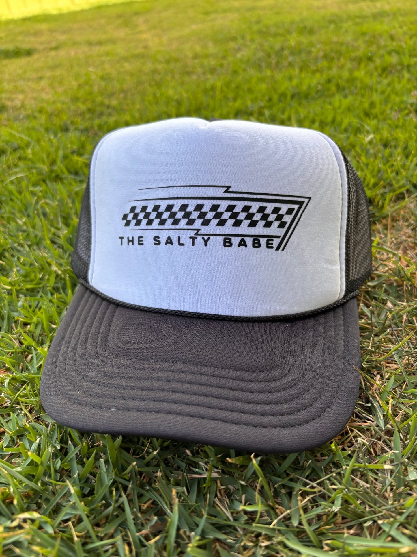 Get ready to race through a stylish day with our Checkered Flag Trucker Hat. This hat is the perfect accessory for any adventure, with its classic trucker style and bold checkered flag design. So go ahead, rev up your look and show off your fun and quirky personality today!