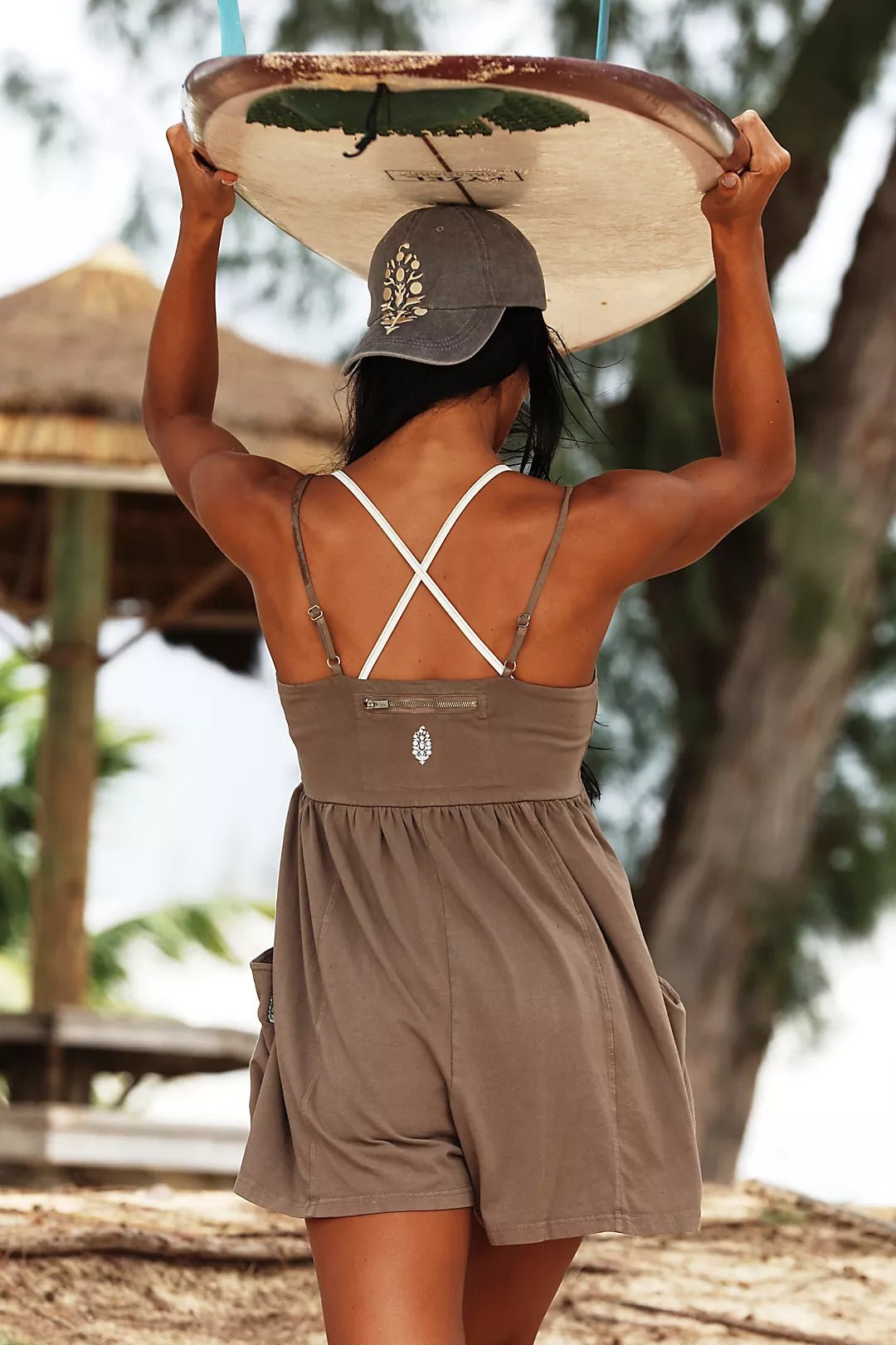 FREE PEOPLE Hot Shot Strappy Romper - Pewter