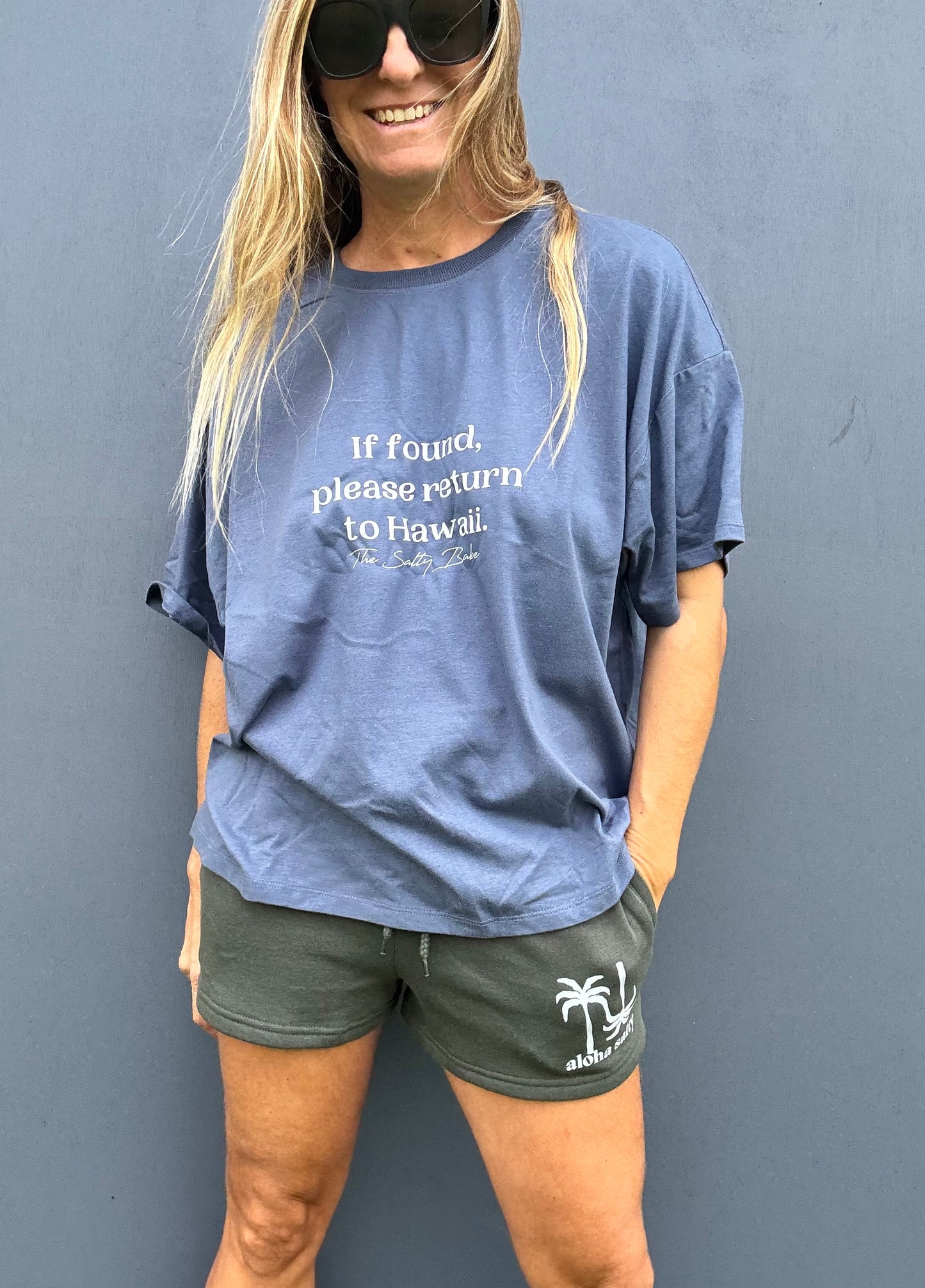 If Found Return To Hawaii Oversized Tee-Dusty Indigo