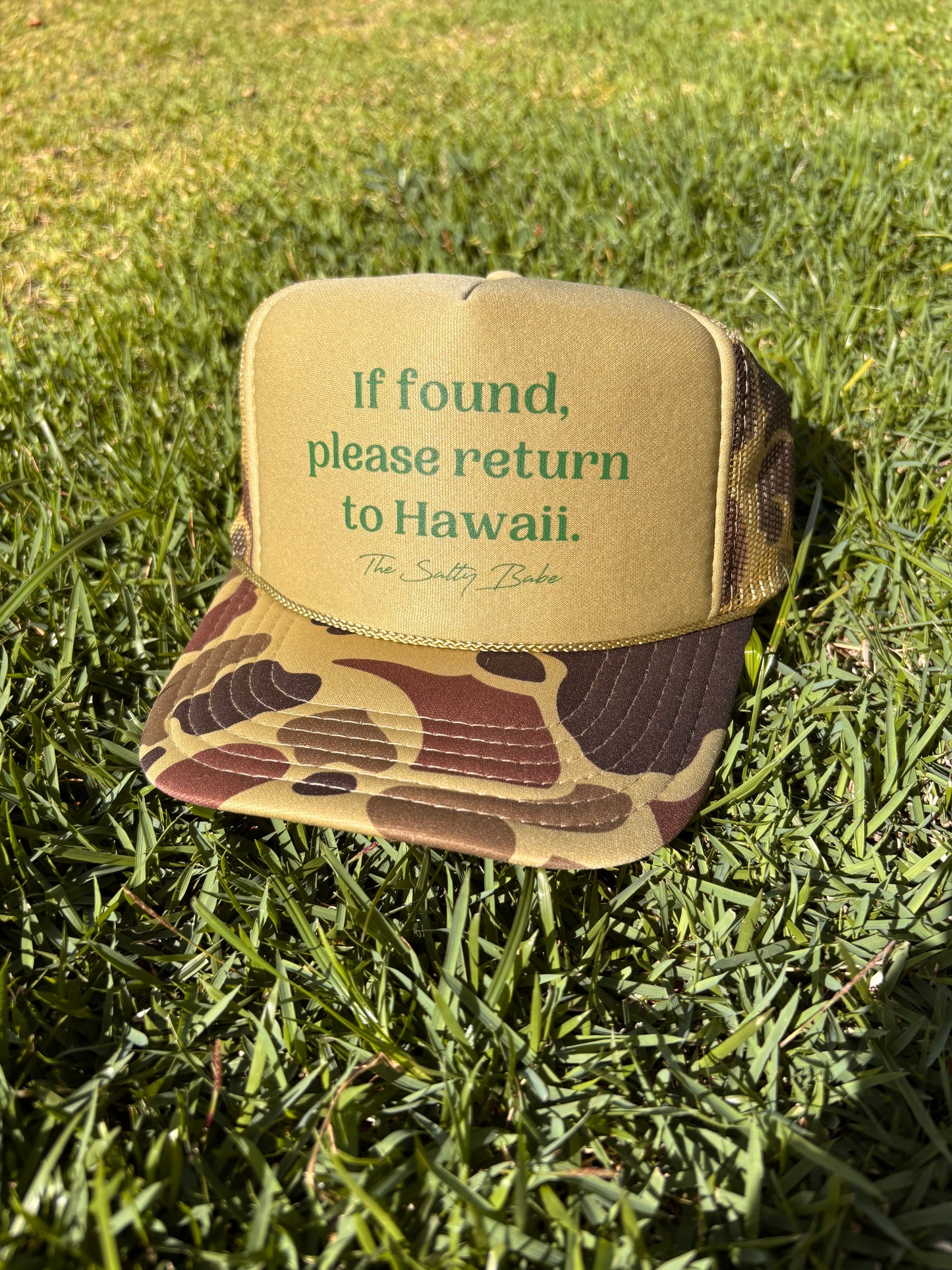 If you're ready to take the Hawaiian island vibes on the road with you, slip on this adjustable If Found, return to Hawaii trucker hat and head out! No more worries of it flying off mid-adventure, so you can focus on the journey and explore with ease. Aloha!