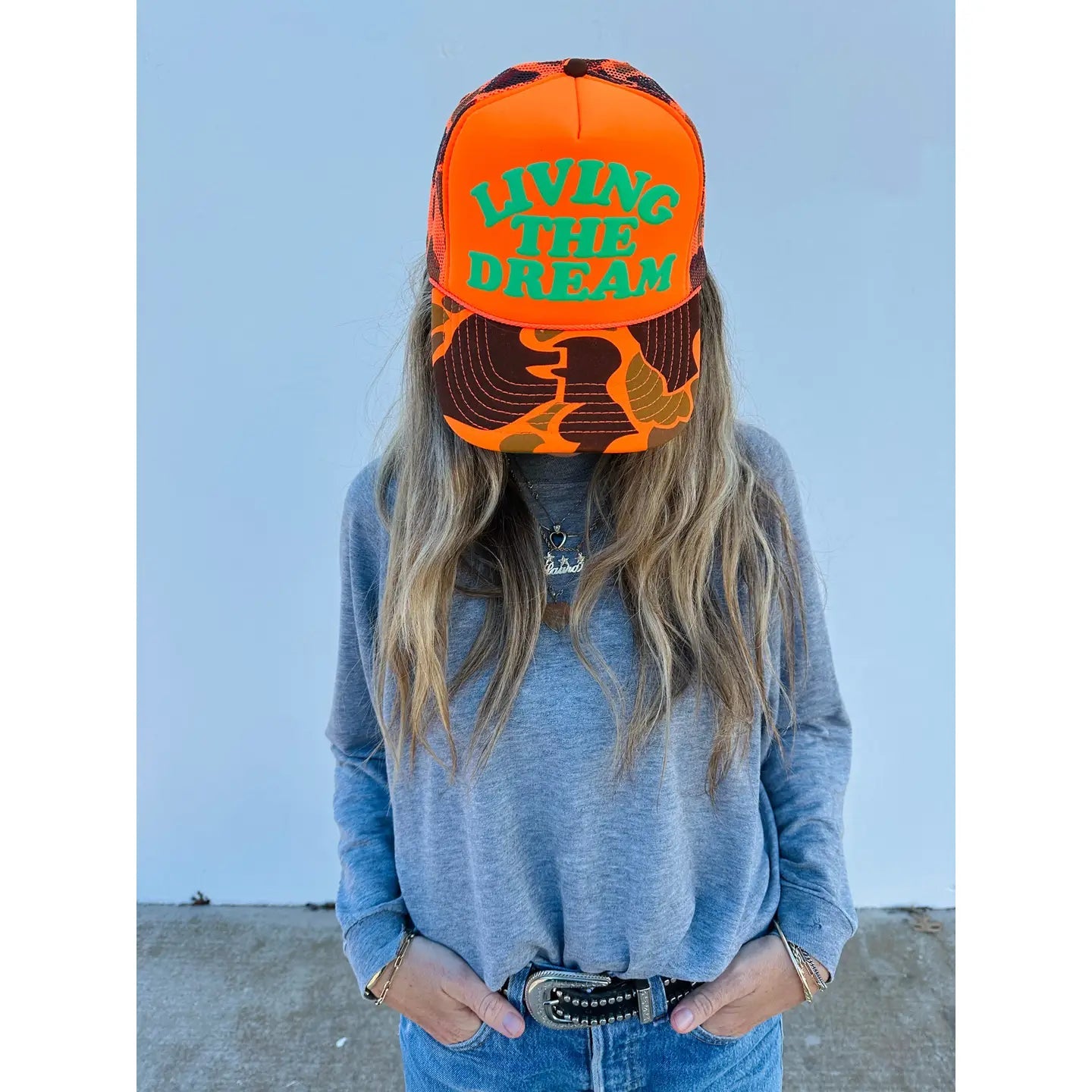 Rock the ultimate laid-back look with our Living The Dream Trucker Hat. Made with 100% polyester on the front and 100% nylon mesh, this hat is the perfect combination of style and comfort. Live your best life in style with this unique and playful trucker hat!