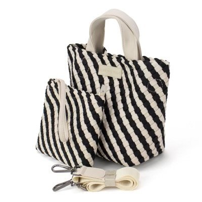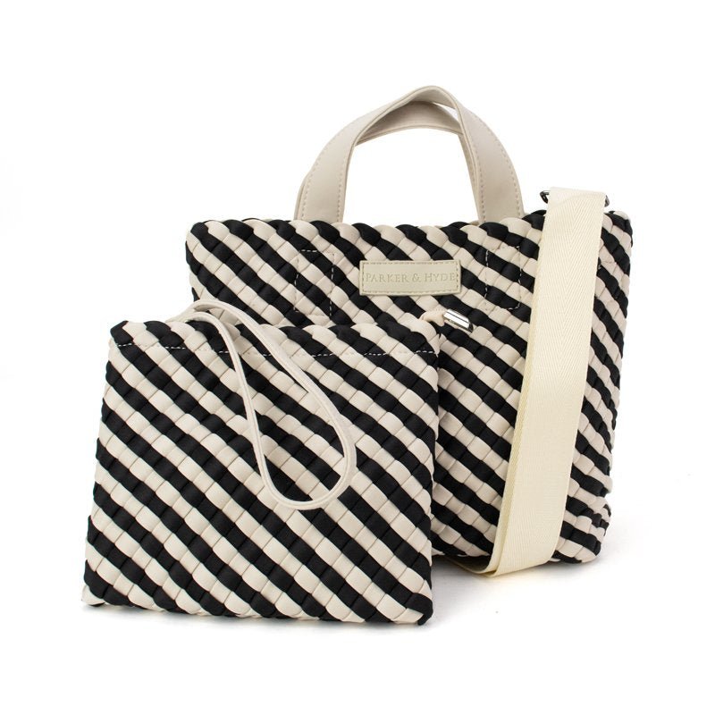 PARKER & HYDE Hampton Woven Mini Tote Bag - Black/Bone