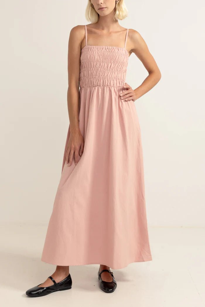 Flaunt a flirty, feminine look in the RHTYHM Classic Shirred Midi Dress. Designed for versatile wear, this dress features a smocked bodice, straight neckline, and adjustable straps for a comfortable fit. Perfect for any summer day or casual outing, this piece is a must-have in your wardrobe!