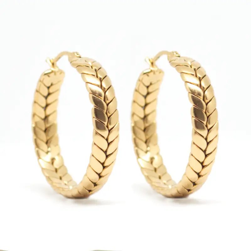 The ultimate hoop! With their retro vibe, the Marina hoops are a staple piece you'll wear over and over again. Made of durable stainless steel and plated with precious gold, this piece will stand the test of time and never change color! Product Details * Hypoallergenic, gold plated stainless steel * Hoops size: 1 1/4"