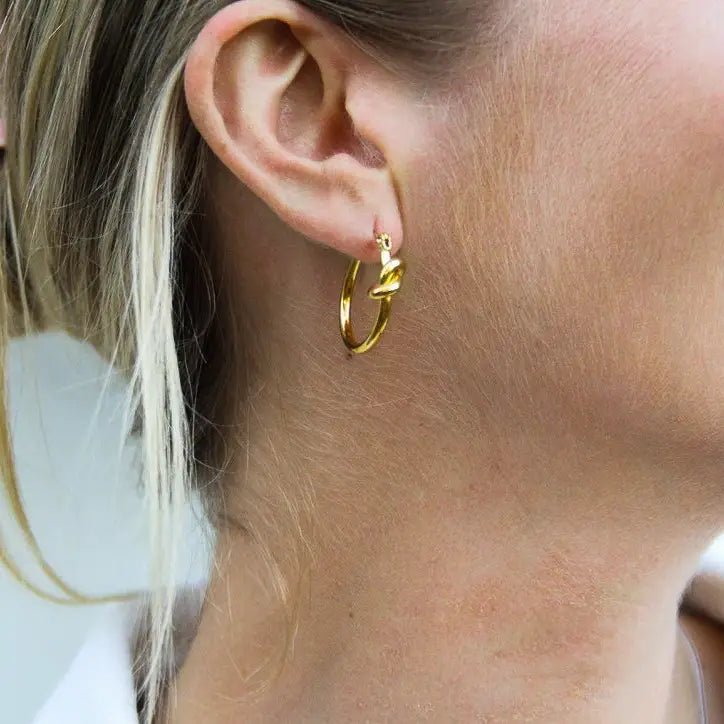 NEW Knot tiny hoops: a dainty, classic style perfect for the summer! Product Details * Hypoallergenic, gold plated stainless steel * Hoop diameter 7/8"