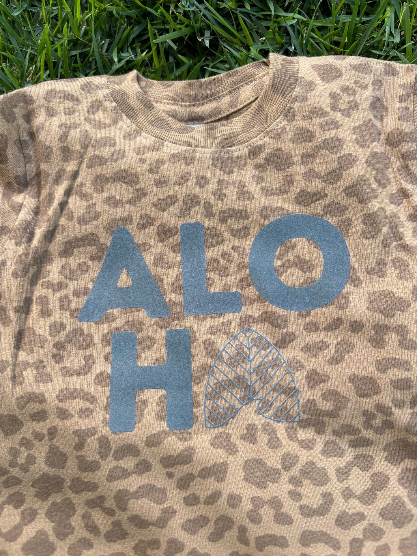Aloha Arch Mommy & Me Tees & Onesies- Brown Leopard