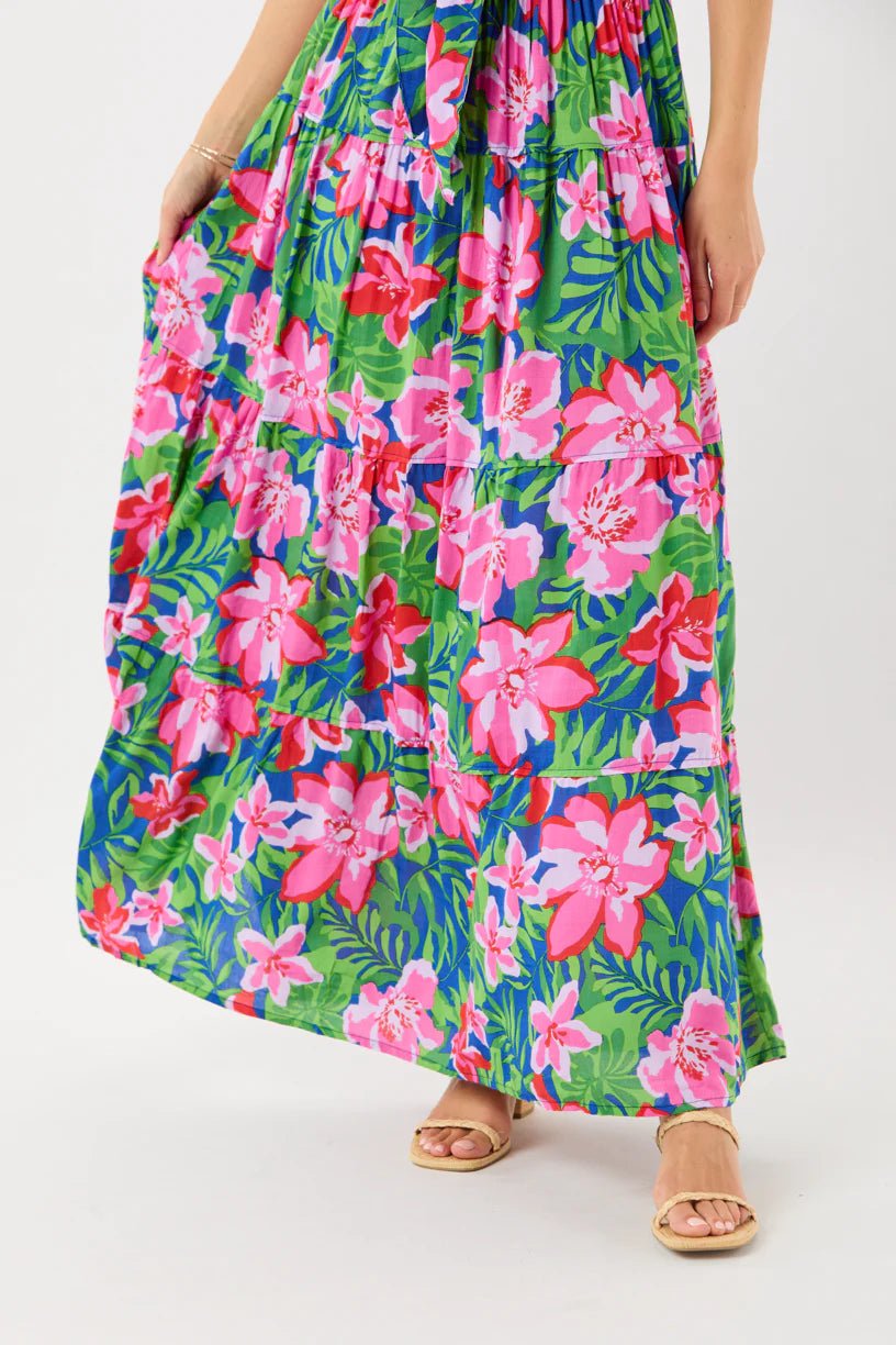 Introducing the TIARE HAWAII Moana Maxi Dress - Honduras Blue! Perfect for all your spontaneous adventures, this dress features an adjustable tie strapless bodice and customizable waistband for a personalized fit. Whether you're on the go or adding accessories, this dress is ready for anything!