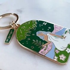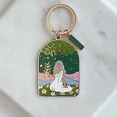 Our brass and enamel keychains make for an eye-catching accessory, perfect for finding those keys at the bottom of your bag! Created with fabricated with vibrant, hard-enamel and polished to a shine. • BRASS AND ENAMEL KEYCHAIN • CHARM MEASURES APPROX. 1 X 2 1/4″